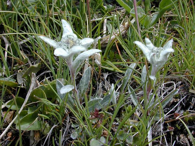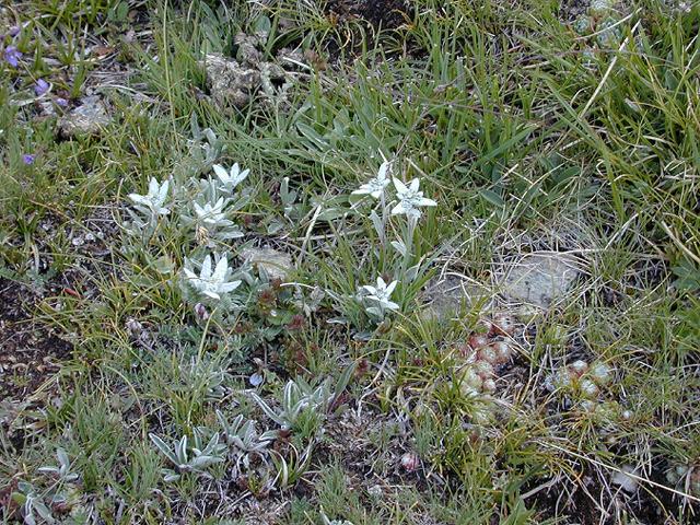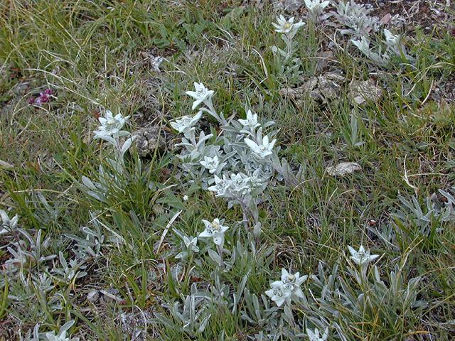 | エーデルワイス | エーデルワイス (レオントポディウム・アルピヌム) (エーデルワイスも群生するんですね) |
